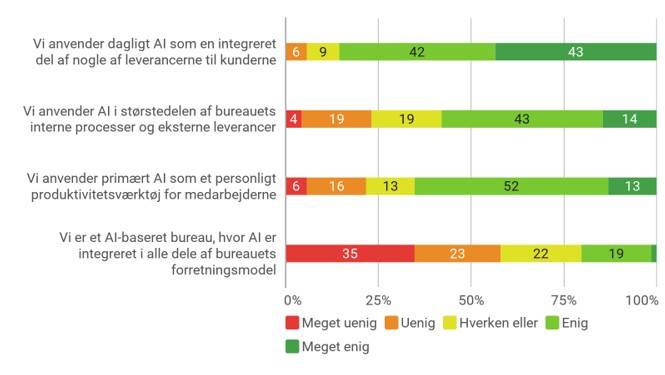 I undersøgelsen skriver en bureauleder: ”Den største udfordring er AI: Hvor ender vi og hvilke kompetencer og output vil blive automatiseret.” Bureaulederen tilføjer, at kunderne ofte kan mere selv.