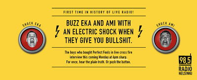 Den finske radiostation Radio Helsinki har sammen med det digitale bureau Perfect Fools fundet en teknologi, hvor man kan give stød til personer, der bliver live-interviewet i radioen, hvis man synes, at de vrøvler, eller hvis man blot er uenig med dem.