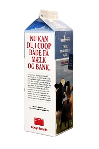 Som et kuriosum kan nævnes, at bankens medievalg også omfatter mælkekartoner – Coop Bank mener selv at være den første bank i Danmark, der er gået denne vej.