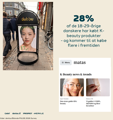 K-beauty er et andet tydeligt eksempel. Det har revolutioneret hele skønhedsindustrien, og det lyder måske allerede velkendt for dig, men tallene viser, at vi kun har set begyndelsen. Markedet forventes at vokse fra 14,6 milliarder dollars i 2024 til 31,8 milliarder dollars i 2033. I Danmark har 28 procent af de 18–29-årige allerede købt K-beauty-produkter, og lige så mange planlægger at købe flere (dentsu PULSE26 survey). Potentialet er langt fra udnyttet, og interessen er massiv.