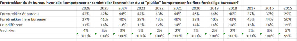 MyImage-analysen viser også, at flere marketingchefer ønsker at samle kompetencerne hos eet bureau. 42 pct. foretrækker nu én samlet partner, mens 37 pct. vælger at plukke kompetencer fra flere bureauer. For ti år siden var billedet omvendt.